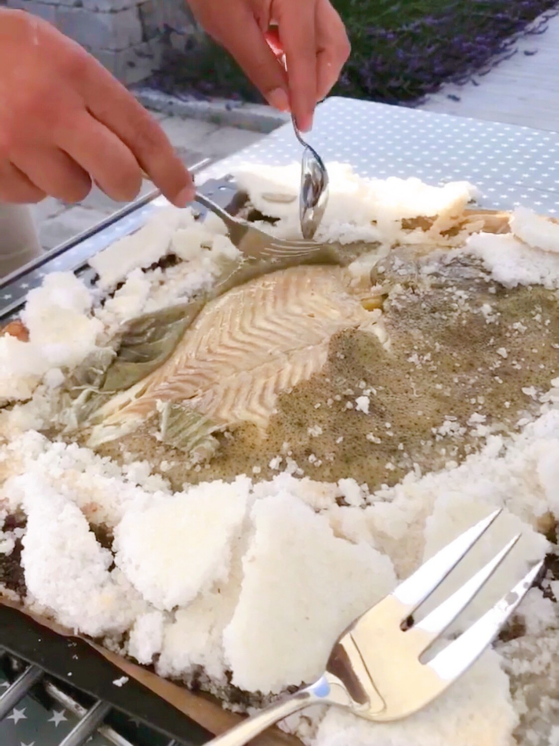 Sätt fisken på bordet och knacka upp och servera (som på videon på instagram) den framför gästerna.